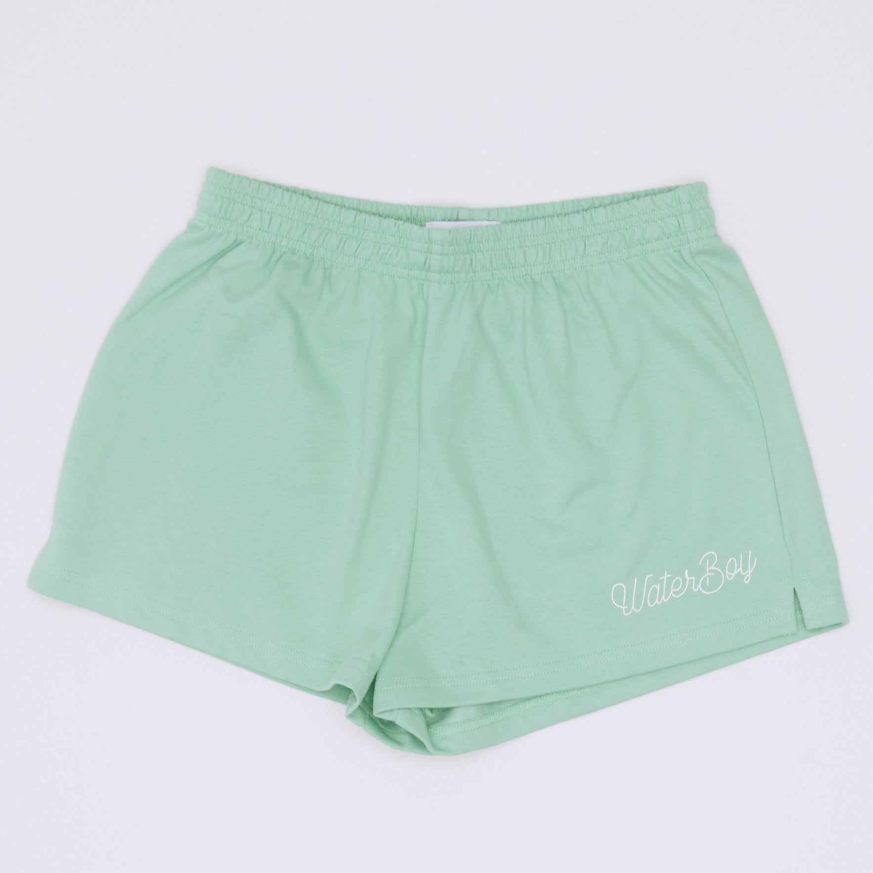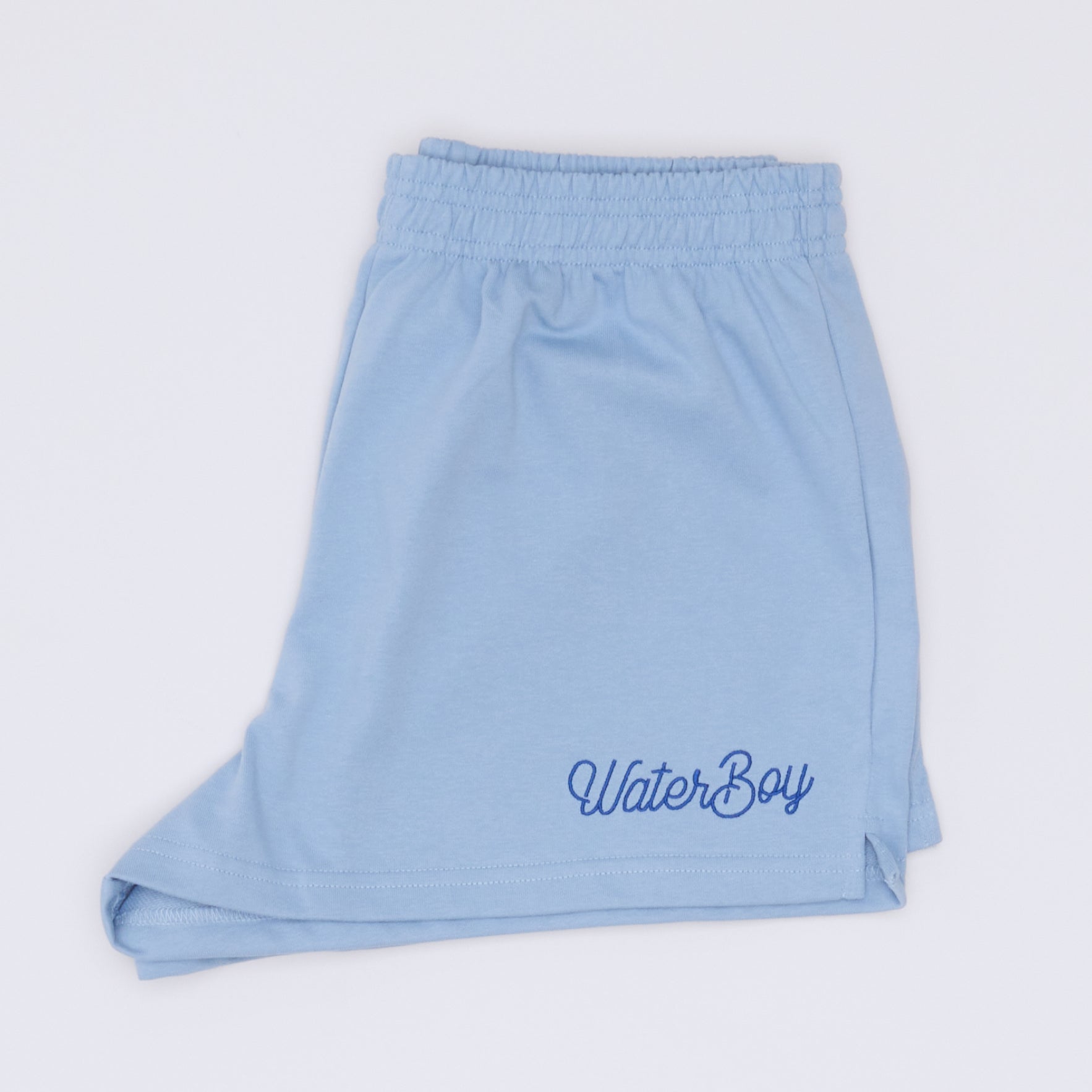 These classic gym shorts are 100% cotton. They feature an elastic waistband and one pocket in the back with the waterboy logo embroidered on the bottom right.